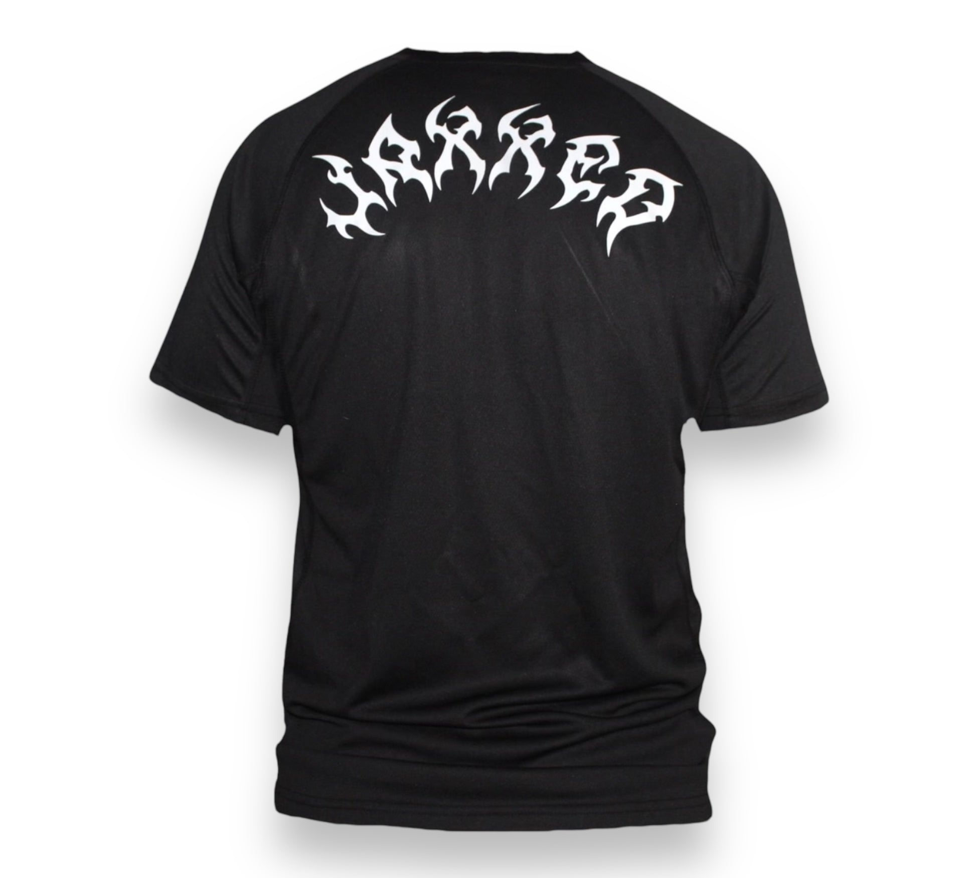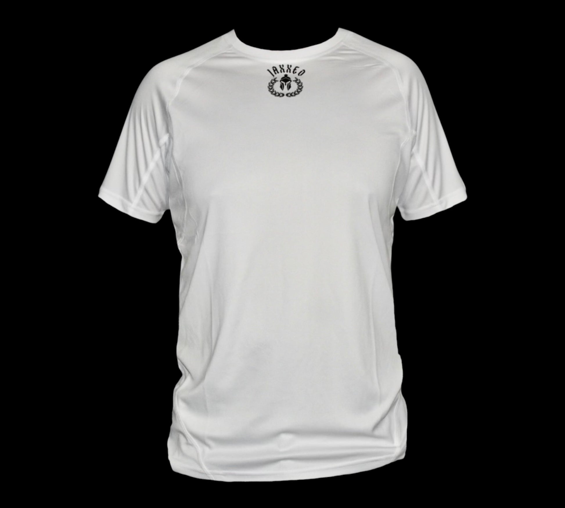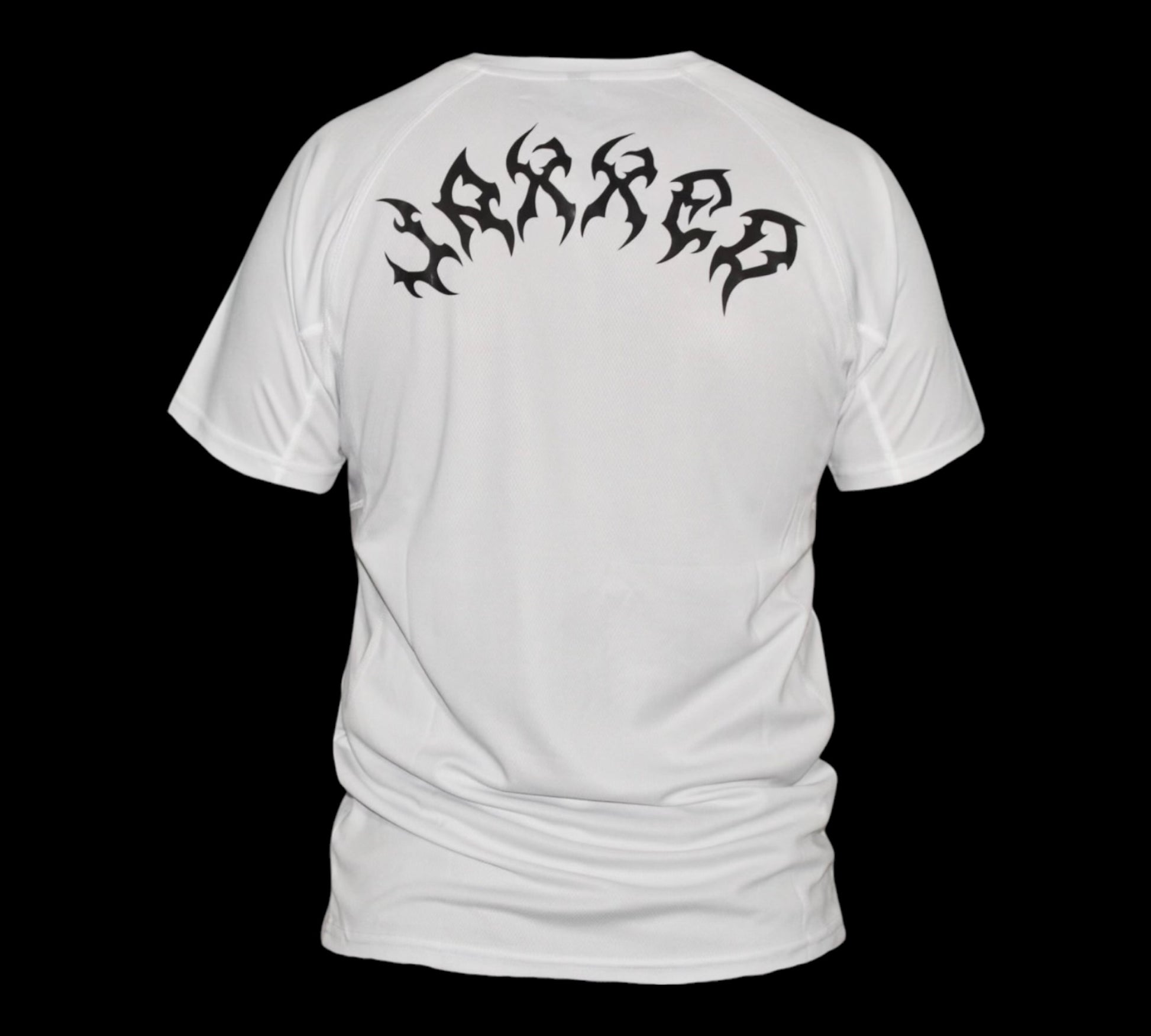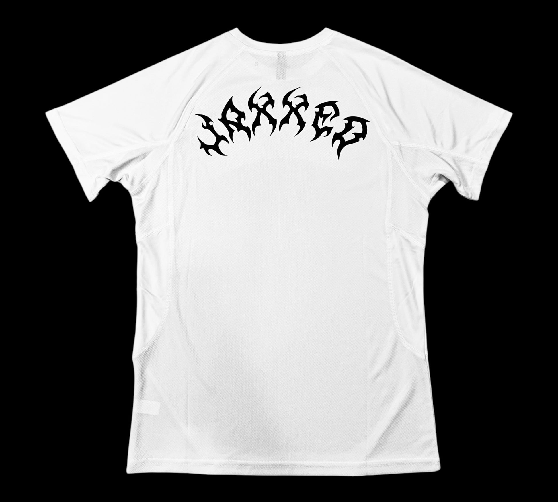Available in classic black and white, this shirt offers stretch fabric that adapts to your every move, while mesh panel detailing provides extra breathability, keeping you cool and focused. Ideal for everything from intense workouts to everyday wear, it combines style and functionality. The front will feature our logo, as for the back it features a lettering design with our name brand: JAXXED.
